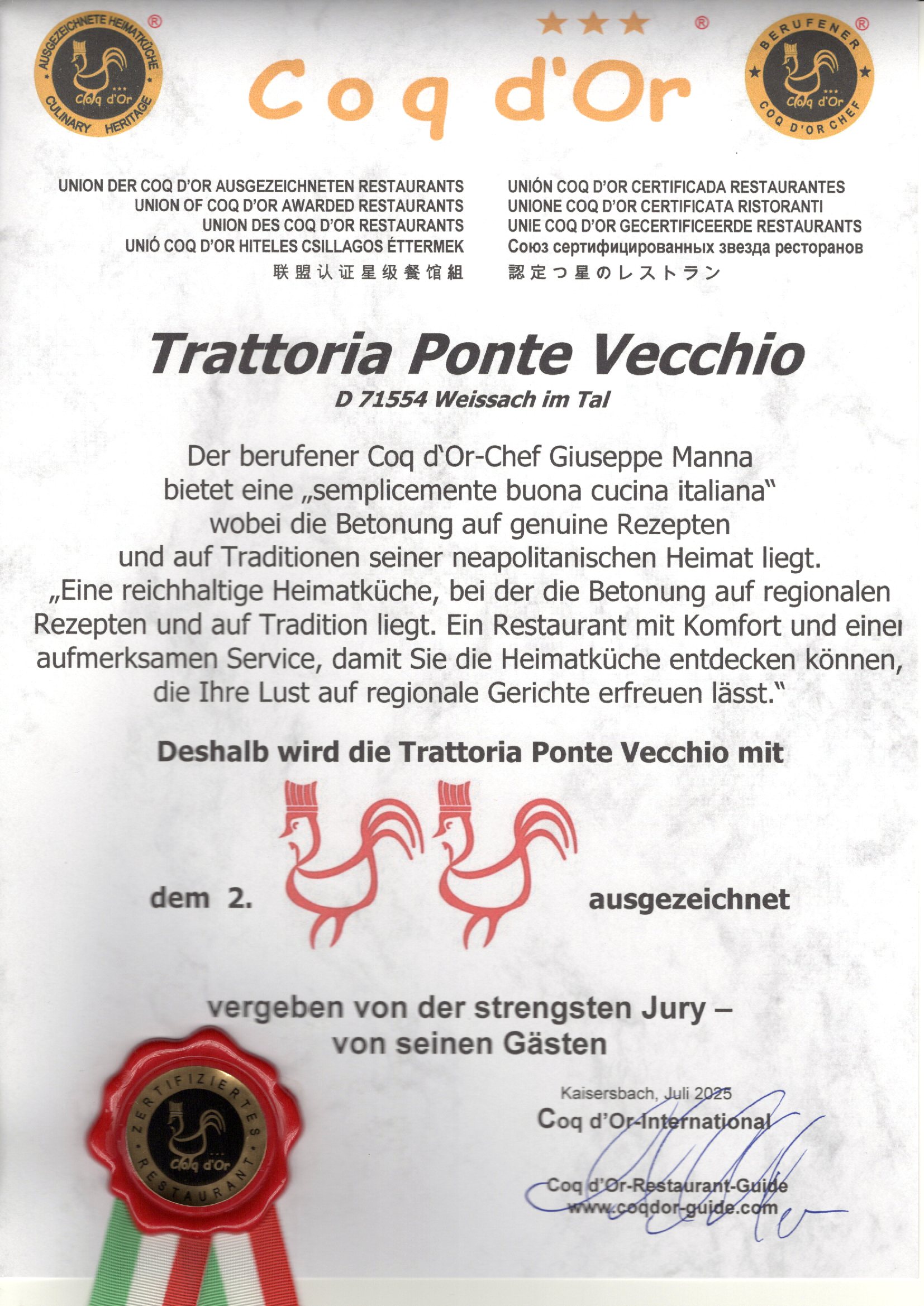 Zertifizierung: Coq d'Or ausgezeichnetes Restaurant - seit 2023 -